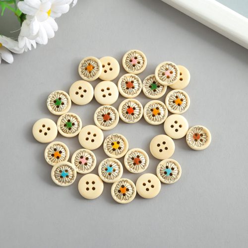 Пуговицы дерево «Ромашка с яркой серединой», набор 5 шт., 1.5×1.5×0.3 см